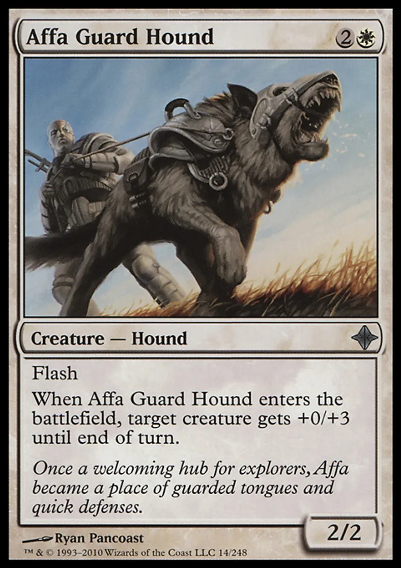 | Oracle Text | Flash When Affa Guard Hound enters the battlefield, target creature gets +0/+3 until end of turn. | ||