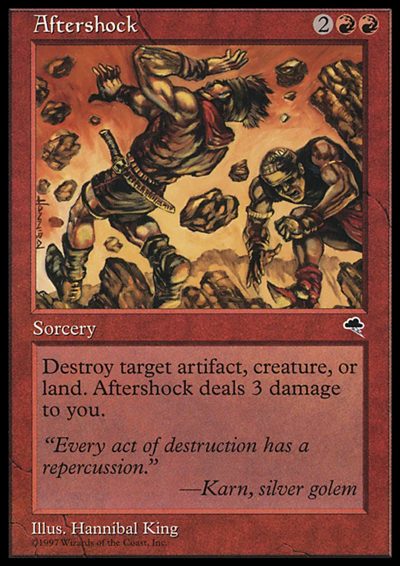 | Oracle Text | Destroy target artifact, creature, or land. Aftershock deals 3 damage to you. | ||
