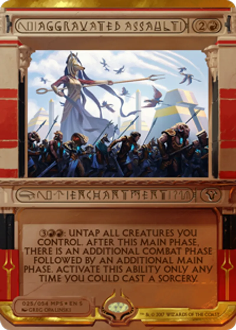 Magic: the Gathering (mtg) Special Enchantment Aggravated Assault from Masterpiece Series: Amonkhet Invocations (MP3) last updated 2026-02-25 16:04:36