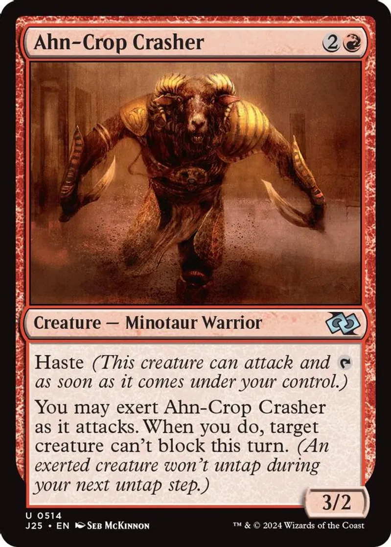 Magic: the Gathering (mtg) Uncommon creature — minotaur warrior Ahn-Crop Crasher from Foundations Jumpstart (J25) last updated 2025-12-13 15:33:06