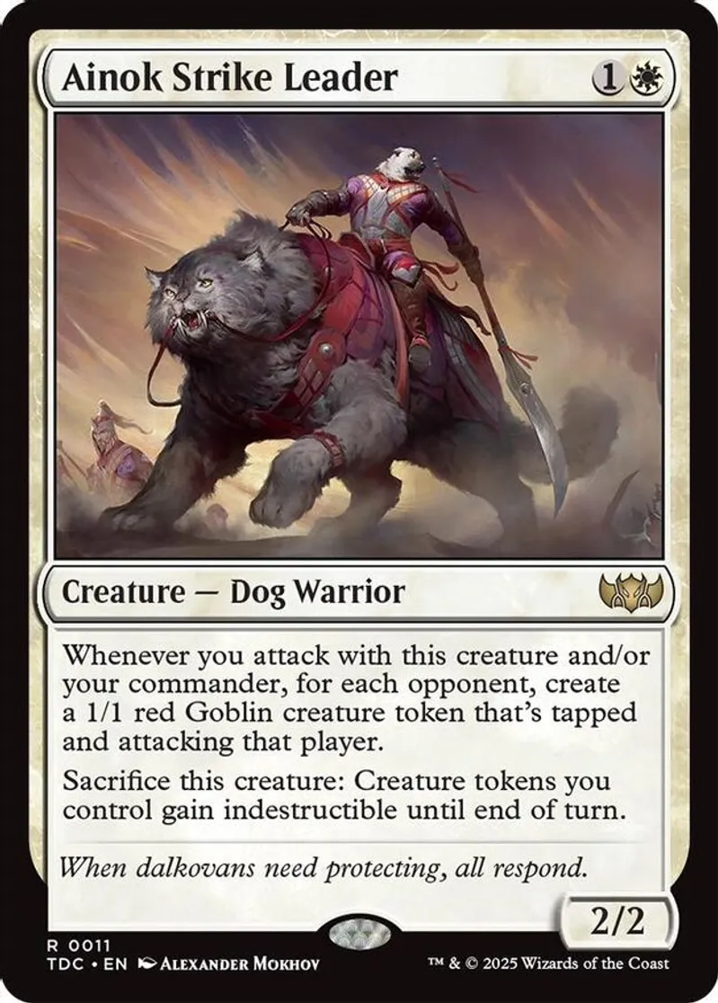 Magic: the Gathering (mtg) Rare creature — dog warrior Ainok Strike Leader from Commander: Tarkir: Dragonstorm (TDC) last updated 2026-04-16 14:52:03