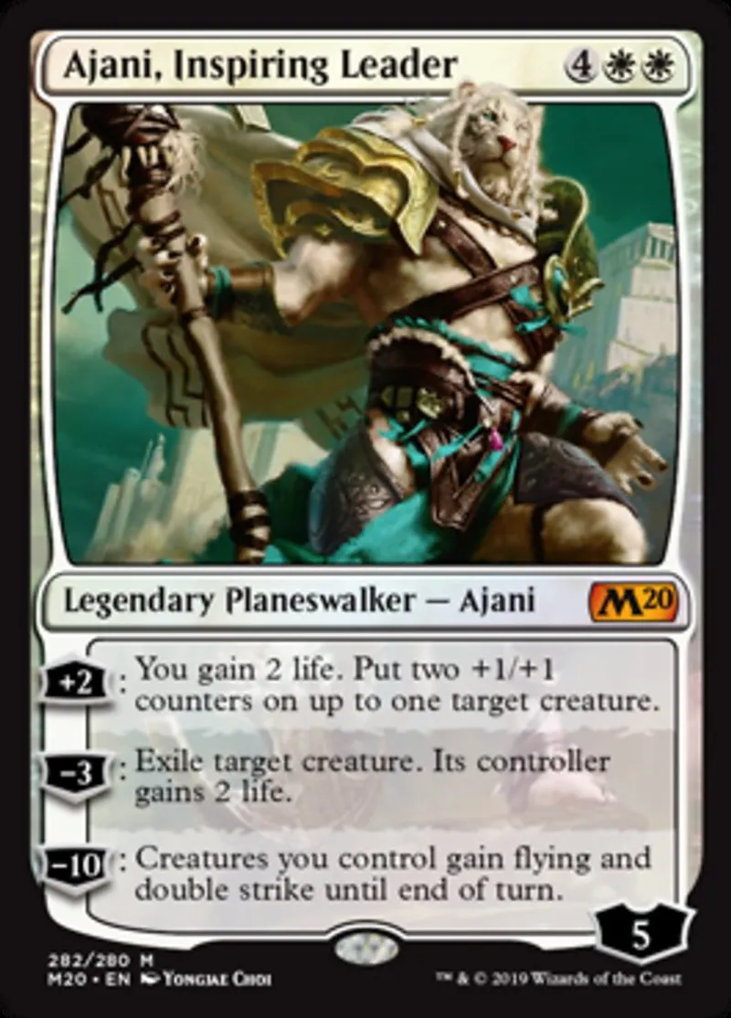 Magic: the Gathering (mtg) Mythic Rare Legendary Planeswalker — Ajani Ajani, Inspiring Leader from Core Set 2020 (M20) last updated 2026-02-24 14:40:36