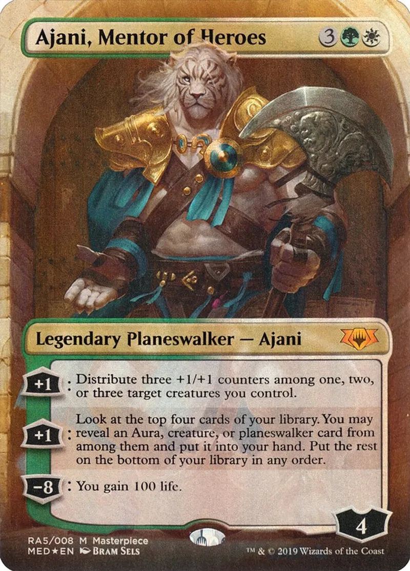 Magic: the Gathering (mtg) Mythic Rare Legendary Planeswalker — Ajani Ajani, Mentor of Heroes from Mythic Edition: Ravnica Allegiance (MED2) last updated 2026-02-24 14:39:32