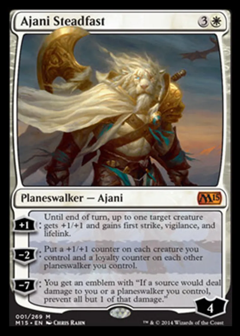 Ajani Steadfast is a Mythic Rare in the set Magic 2015 Core Set.