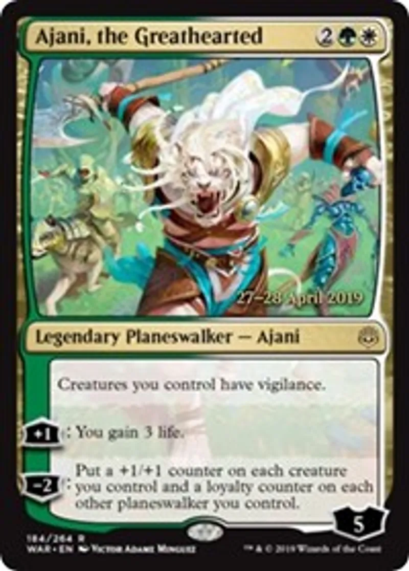 Magic: the Gathering (mtg) Rare Legendary Planeswalker — Ajani Ajani, the Greathearted from Prerelease Cards (pPRE) last updated 2026-02-21 16:58:06