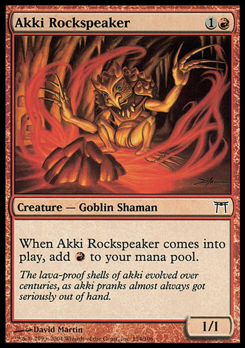 | Oracle Text | When Akki Rockspeaker enters the battlefield, add {{r}} to your mana pool. | ||
