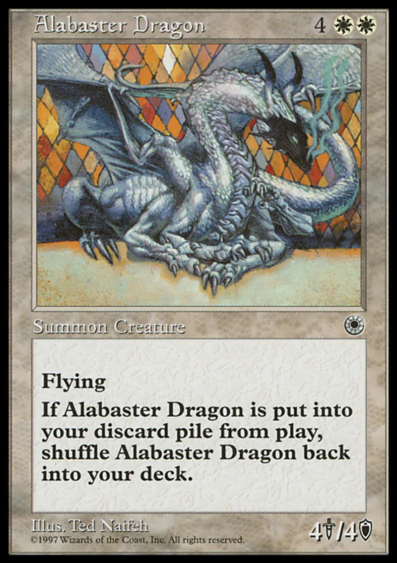 | Oracle Text | Flying When Alabaster Dragon dies, shuffle it into its owner's library. | ||