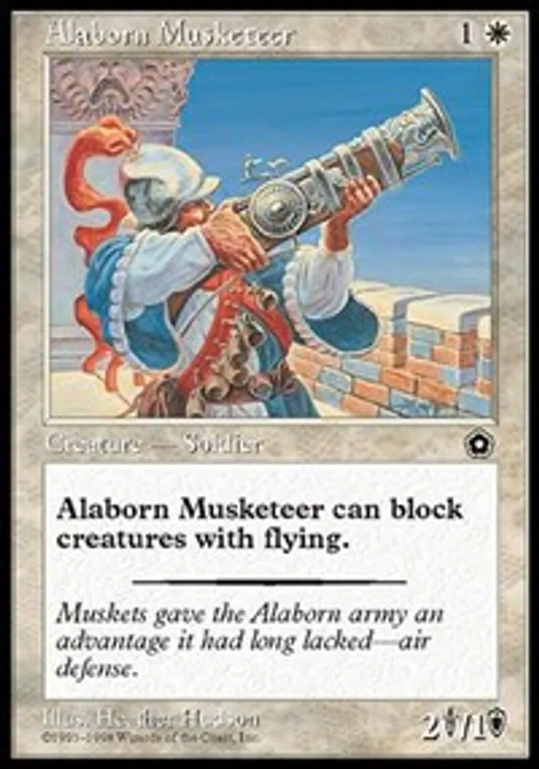Magic: the Gathering (mtg) Common Creature - Soldier Alaborn Musketeer from Portal Second Age (P02) last updated 2026-02-25 16:09:03