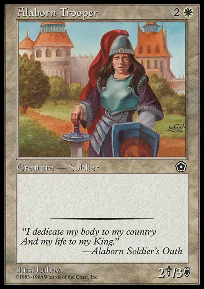 Magic: the Gathering (mtg) Common Creature - Human Soldier Alaborn Trooper from Portal Second Age (P02) last updated 2026-02-21 17:32:02