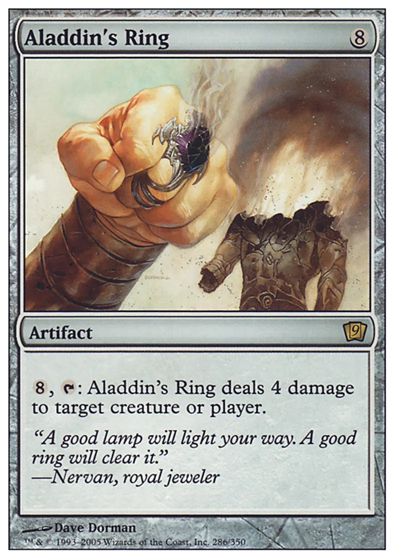 Magic: the Gathering (mtg) Rare Artifact Aladdin's Ring from Ninth Edition (9ED) last updated 2026-02-24 15:53:07