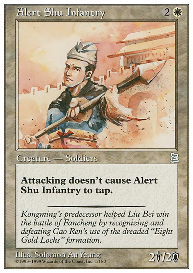 Magic: the Gathering (mtg) Uncommon Creature - Human Soldier Alert Shu Infantry from Portal Three Kingdoms (PTK) last updated 2026-02-25 14:44:33