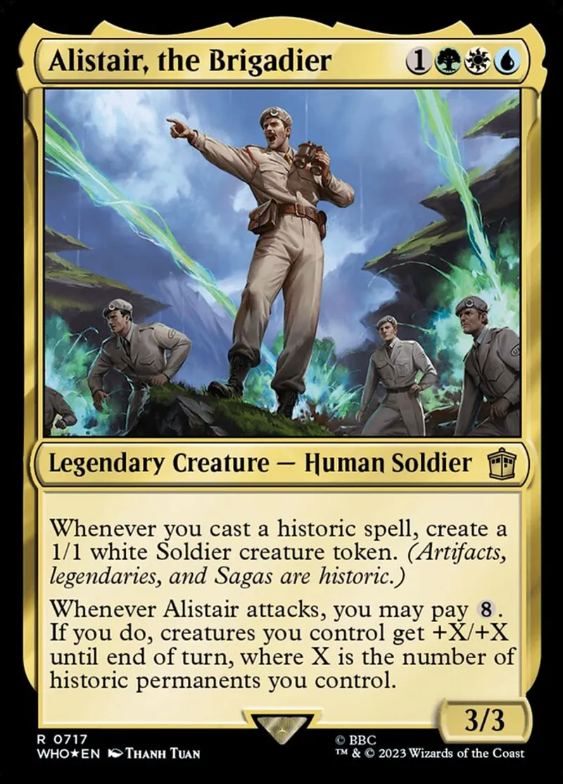Magic: the Gathering (mtg) Rare Legendary Creature — Human Soldier Alistair, the Brigadier from Doctor Who (who) last updated 2026-02-24 15:46:02