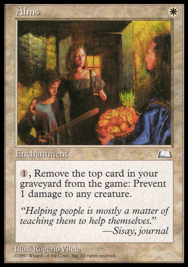 Magic: the Gathering (mtg) Common Enchantment Alms from Weatherlight (WTH) last updated 2026-02-21 17:31:06