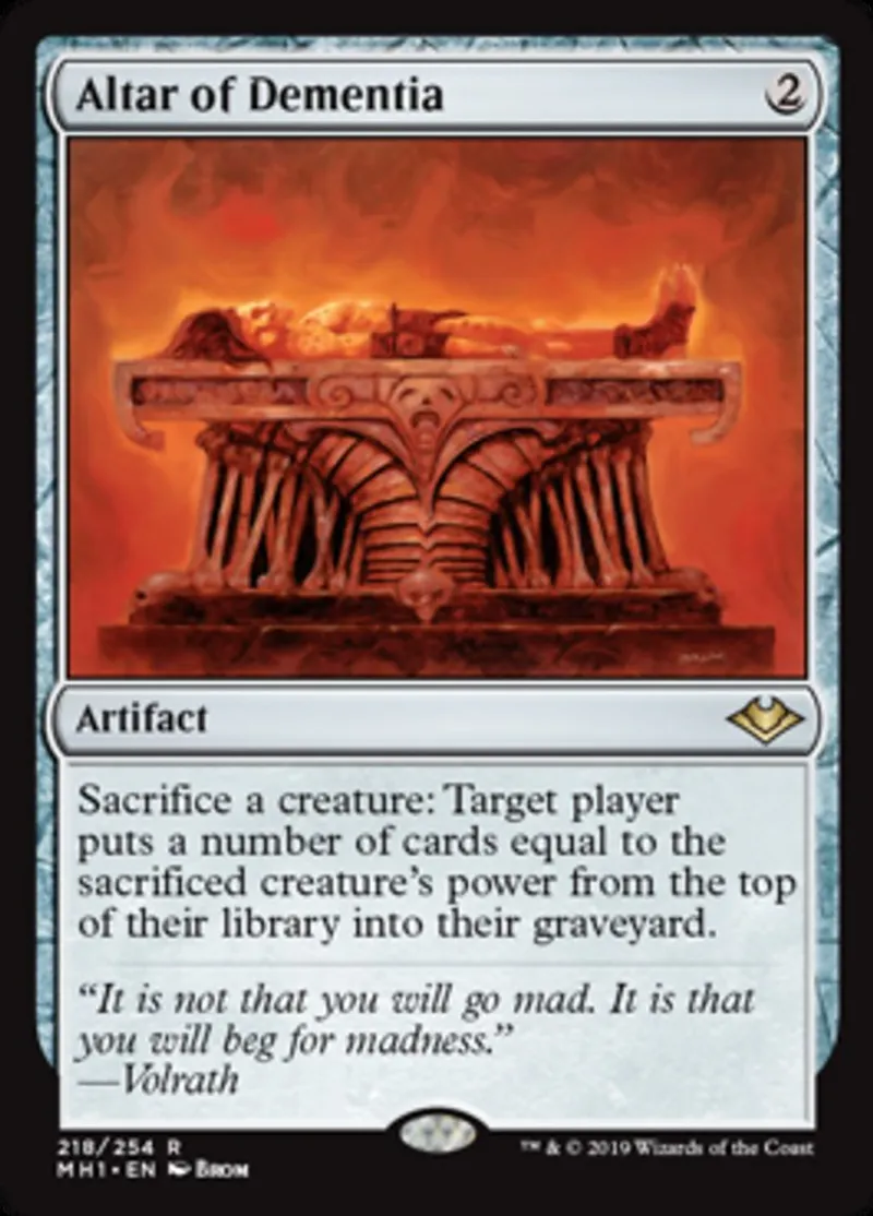Magic: the Gathering (mtg) Rare Artifact Altar of Dementia from Modern Horizons (MH1) last updated 2026-02-24 16:08:32