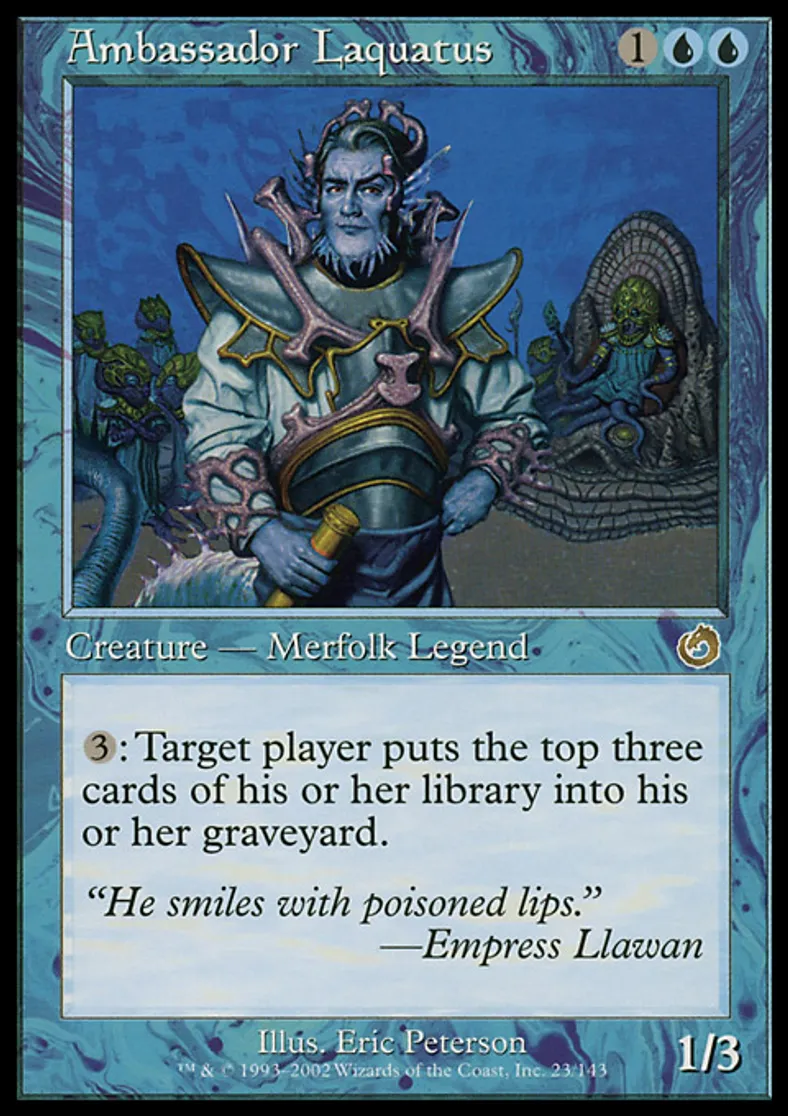 Magic: the Gathering (mtg) Rare Legendary Creature - Merfolk Wizard Ambassador Laquatus from Torment (TOR) last updated 2026-02-25 14:46:03