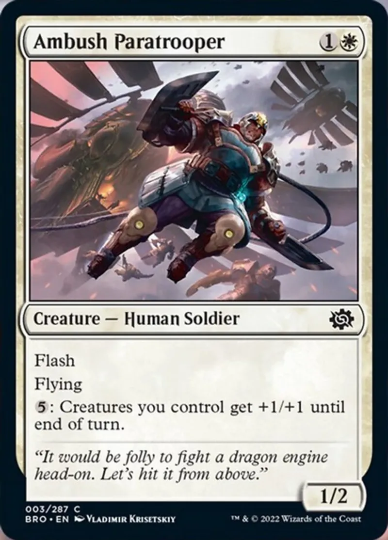 Magic: the Gathering (mtg) common Creature — Human Soldier Ambush Paratrooper from The Brothers' War (bro) last updated 2026-02-21 16:14:36
