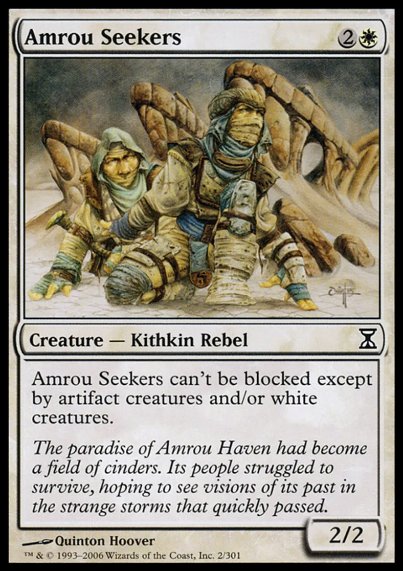 | Oracle Text | Amrou Seekers can't be blocked except by artifact creatures and/or white creatures. | ||