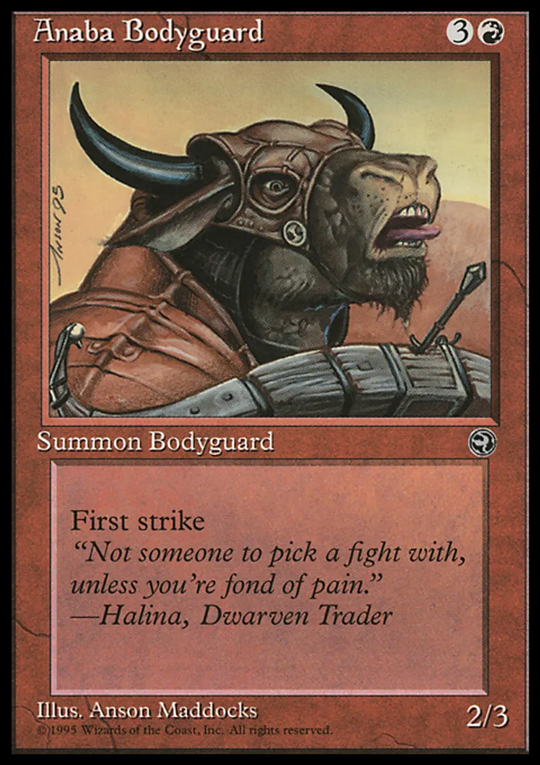 Magic: the Gathering (mtg) Common Creature - Minotaur Anaba Bodyguard [Version 2] from Homelands (HML) last updated 2026-02-21 17:11:32