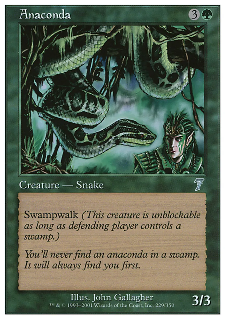 | Flavor Text | You'll never find an anaconda in a swamp. It will always find you first. | ||