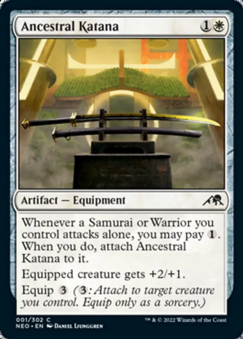 Ancestral Katana is a Common in the set Kamigawa: Neon Dynasty.