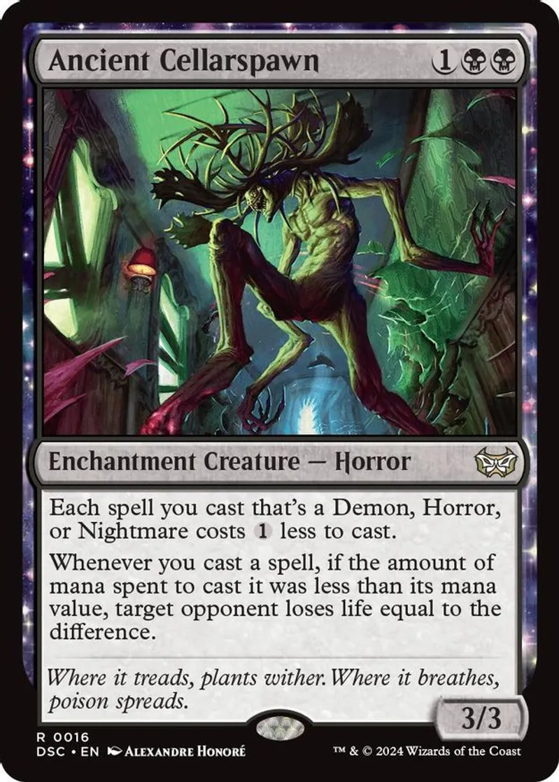 Magic: the Gathering (mtg) Rare enchantment creature — horror Ancient Cellarspawn from Commander: Duskmourn: House of Horror (DSC) last updated 2026-04-11 14:21:03