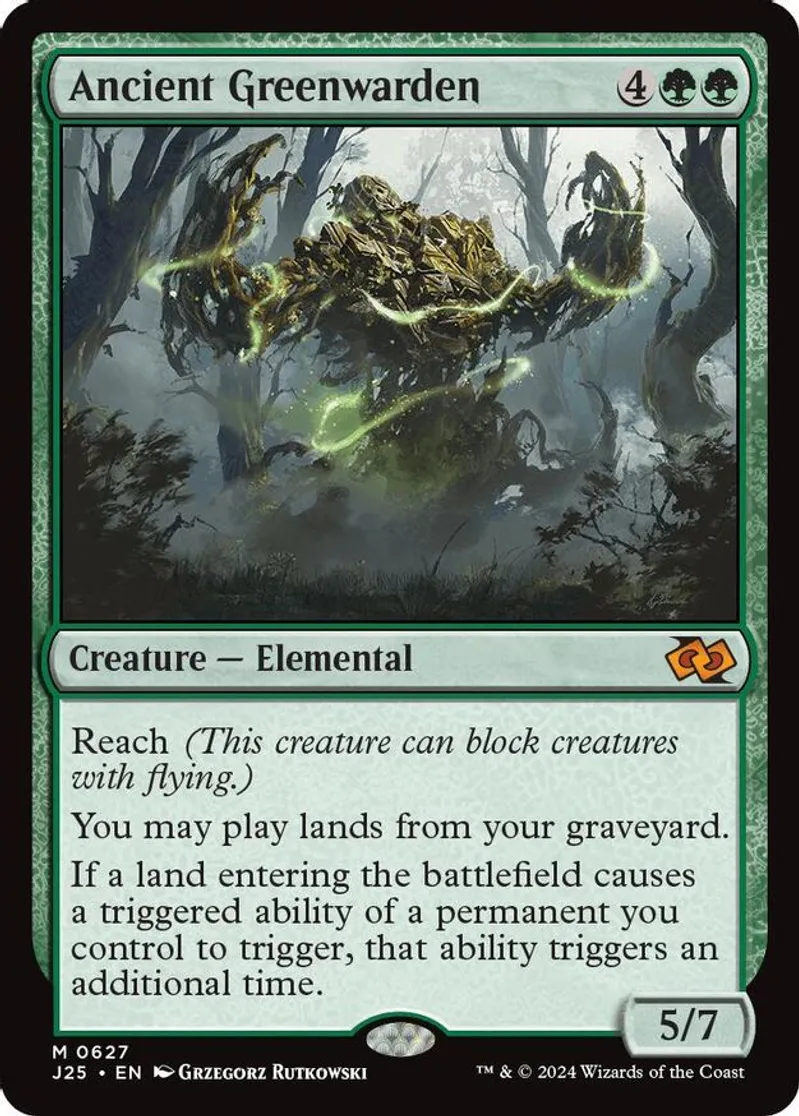 Magic: the Gathering (mtg) Mythic Rare creature — elemental Ancient Greenwarden from Foundations Jumpstart (J25) last updated 2026-02-25 14:21:06