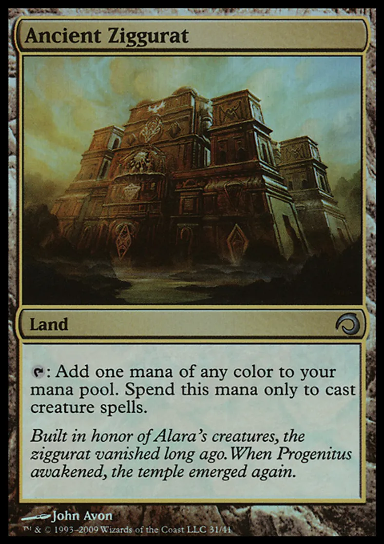 | Flavor Text | Built in honor of Alara's creatures, the ziggurat vanished long ago. When Progenitus awakened, the temple emerged again. | ||