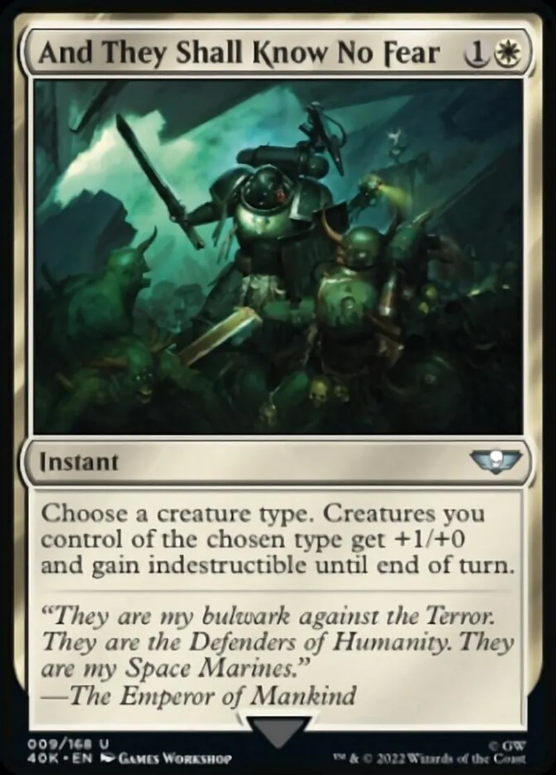Magic: the Gathering (mtg) uncommon Instant And They Shall Know No Fear from Warhammer 40,000 (40k) last updated 2026-02-24 14:24:36