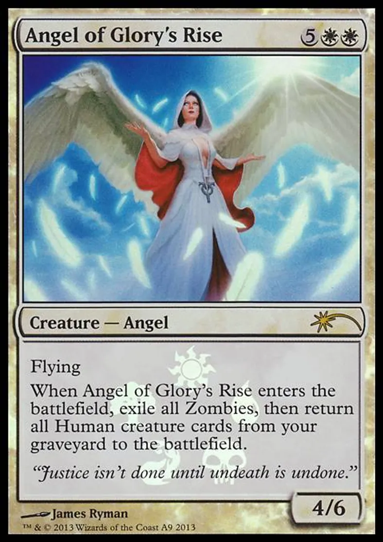 When Angel of Glory's Rise enters the battlefield, exile all Zombies, then return all Human creature cards from your graveyard to the battlefield. | ||