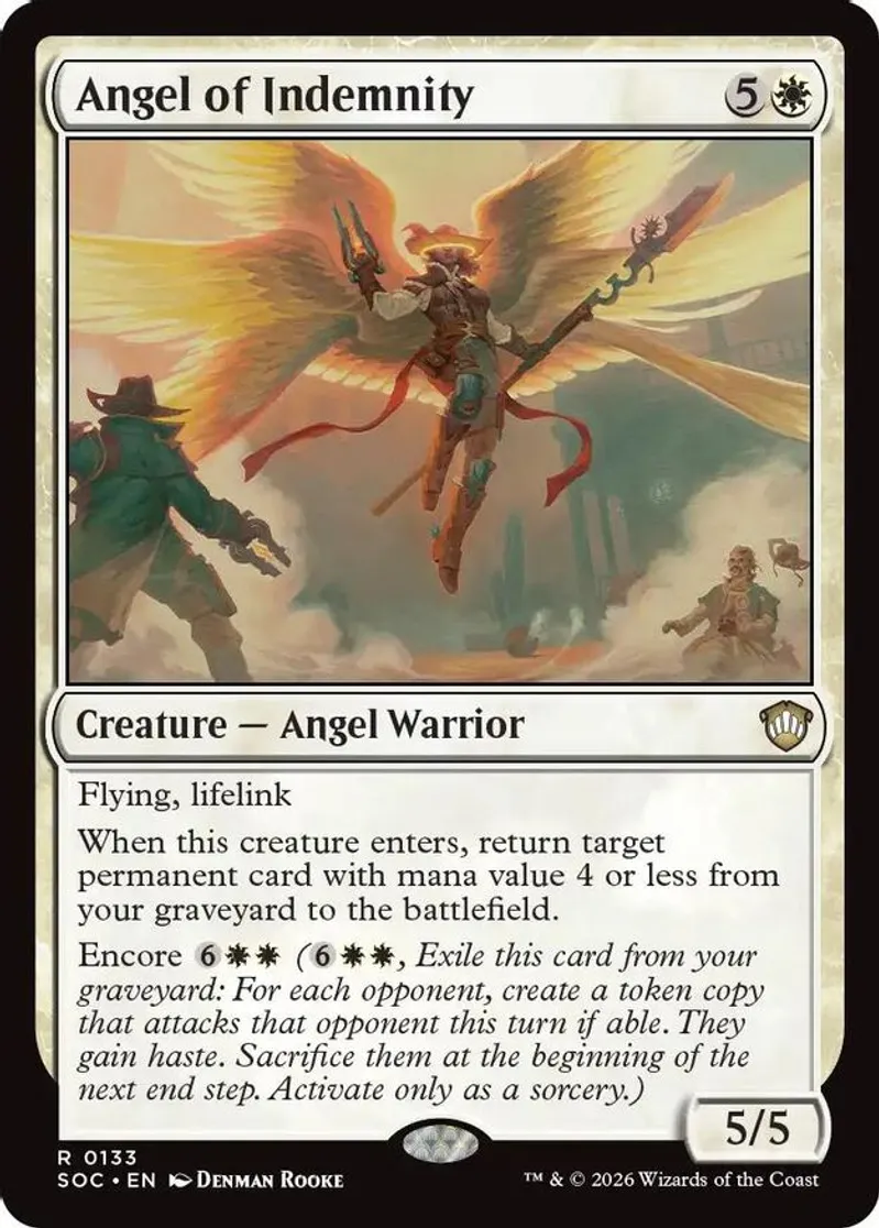 Magic: the Gathering (mtg) Rare creature — angel warrior Angel of Indemnity from Commander: Secrets of Strixhaven (SOC) last updated 2026-04-17 00:16:05