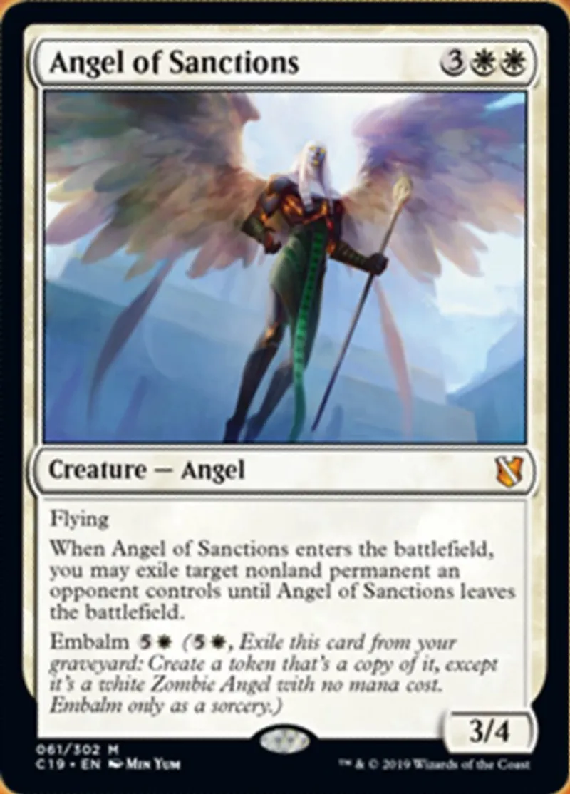 Magic: the Gathering (mtg) Mythic Rare Creature — Angel Angel of Sanctions from Commander 2019 (C19) last updated 2026-02-21 17:00:02
