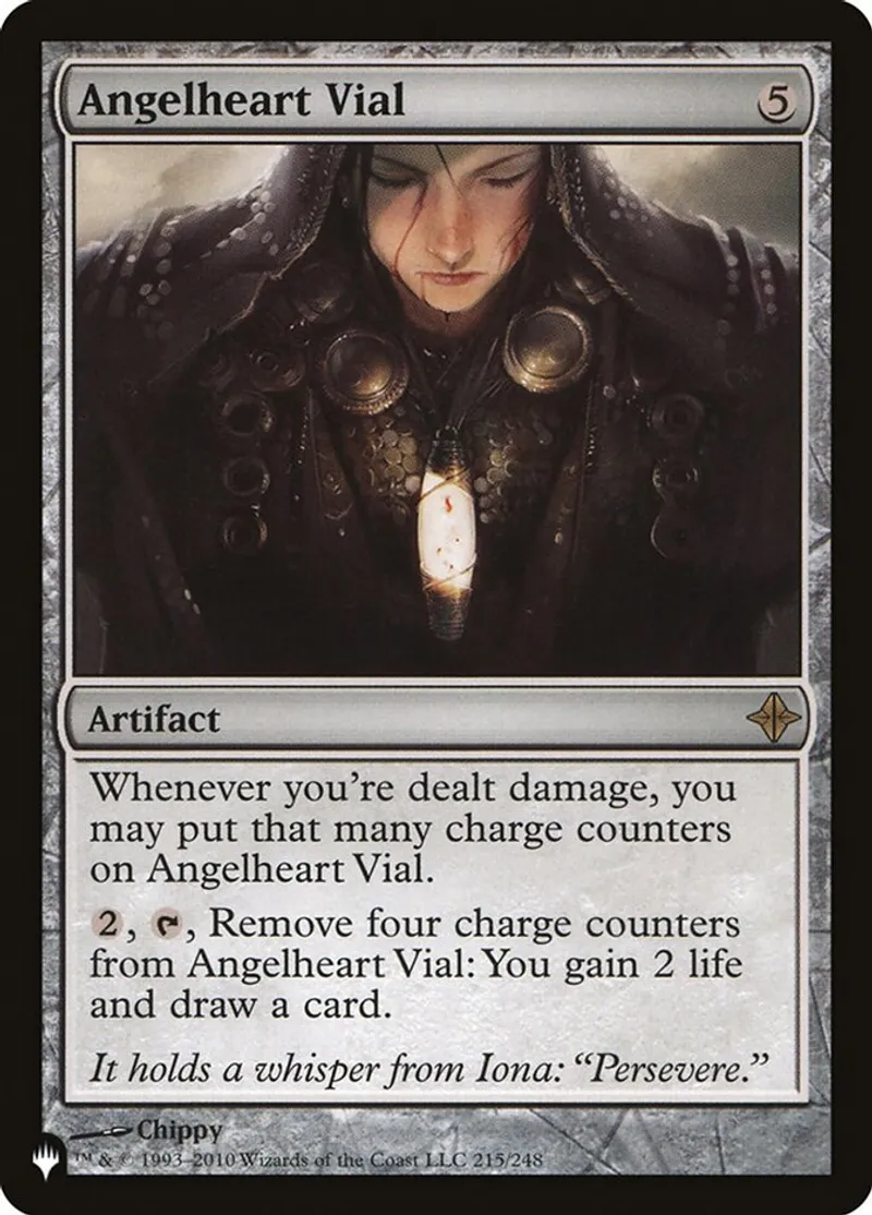 | Oracle Text | Whenever you’re dealt damage, you may put that many charge counters on Angelheart Vial.