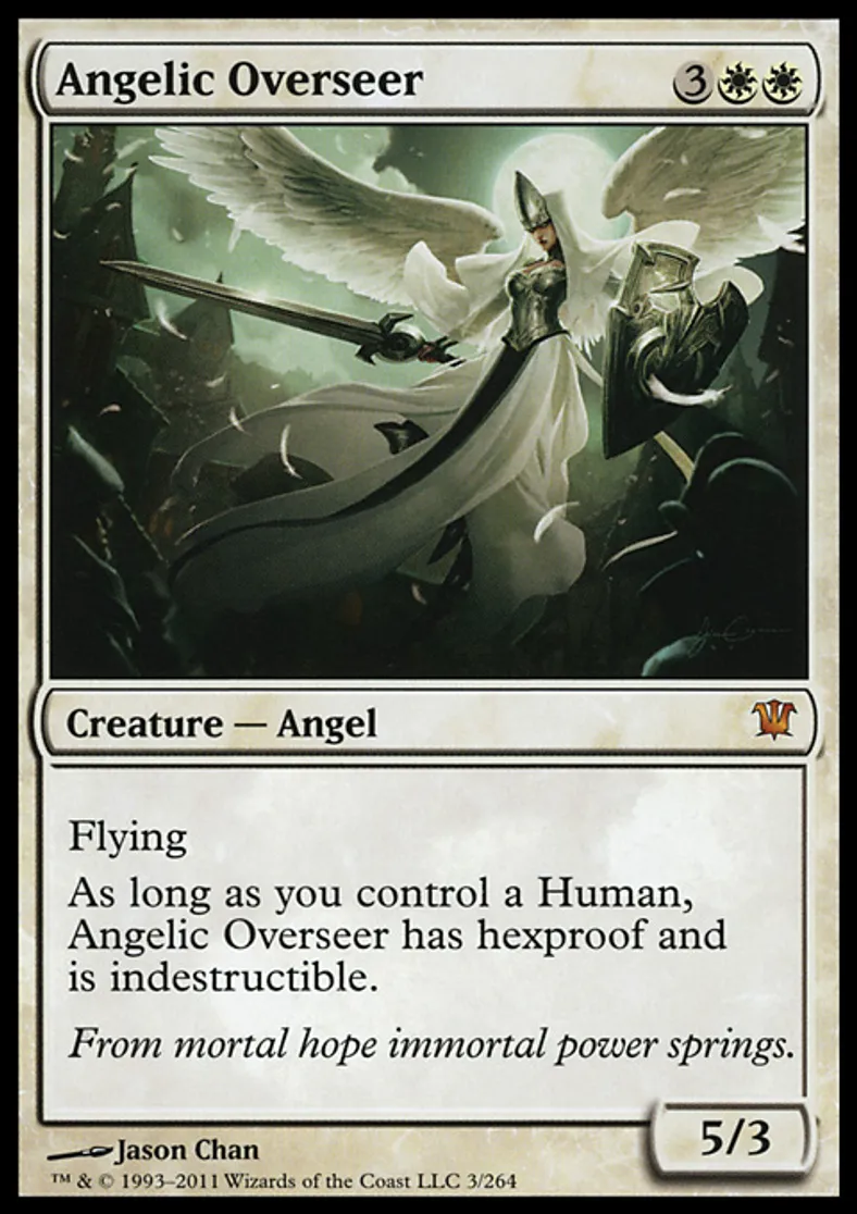 | Oracle Text | Flying As long as you control a Human, Angelic Overseer has hexproof and indestructible. | ||