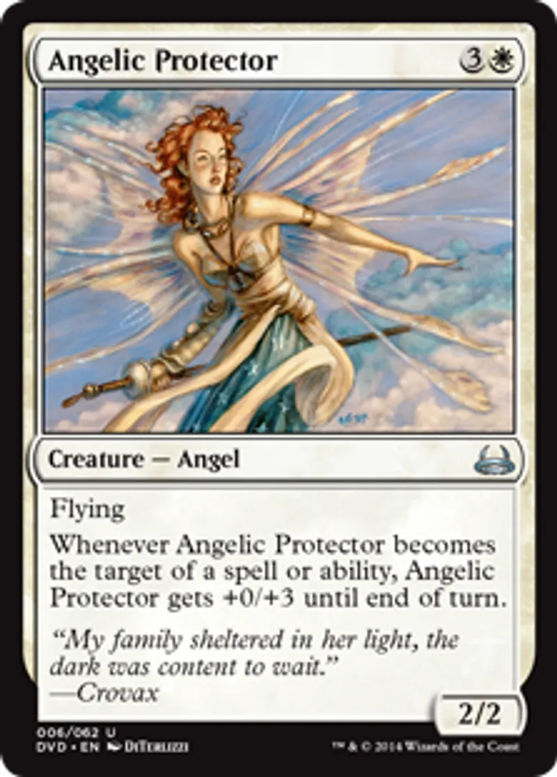 | Oracle Text | Flying Whenever Angelic Protector becomes the target of a spell or ability, Angelic Protector gets +0/+3 until end of turn. | ||
