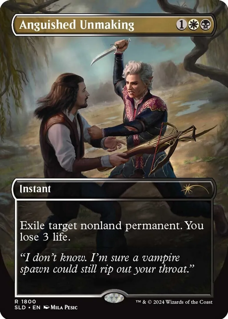 Magic: the Gathering (mtg) Rare Instant Anguished Unmaking from Secret Lair Drop (SLD) last updated 2025-12-15 14:18:02
