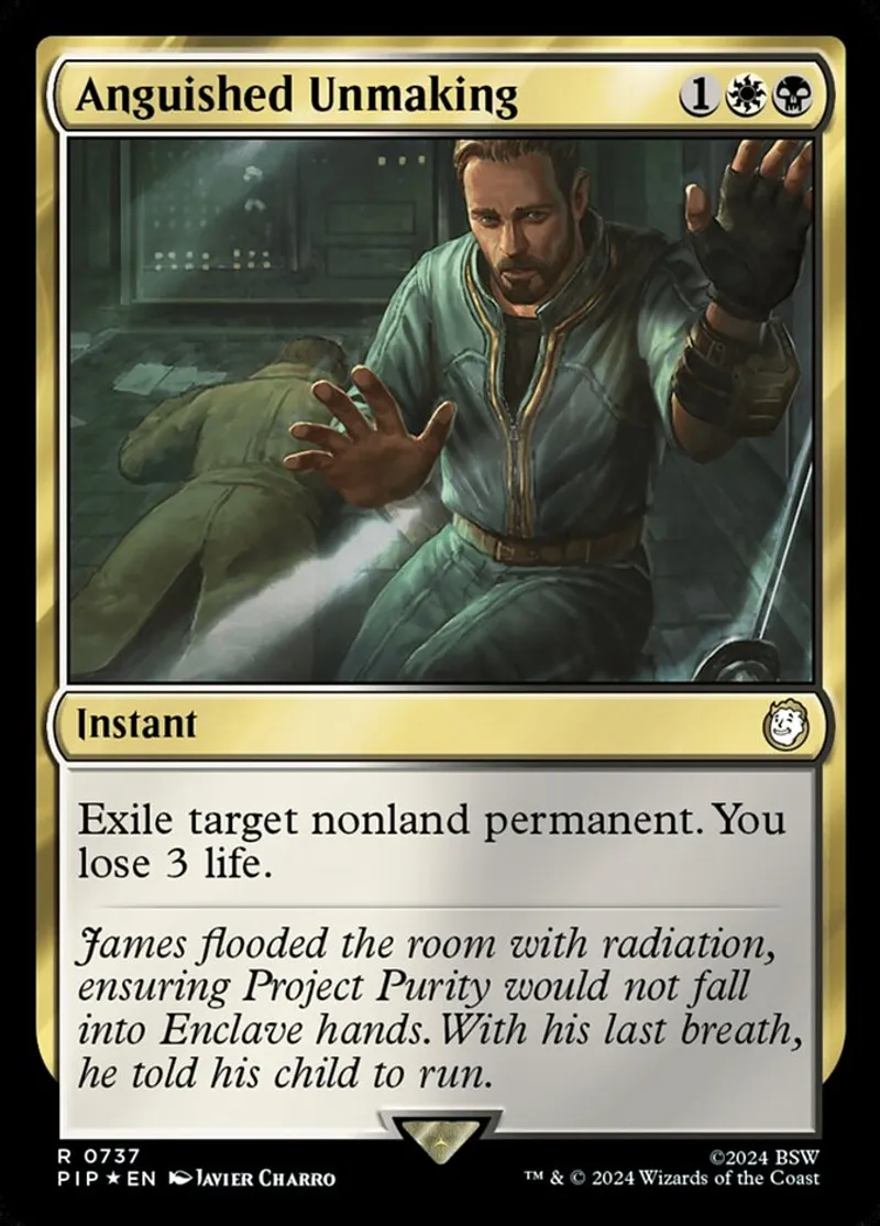 Magic: the Gathering (mtg) rare Instant Anguished Unmaking from Universes Beyond: Fallout (pip) last updated 2025-12-13 15:57:31