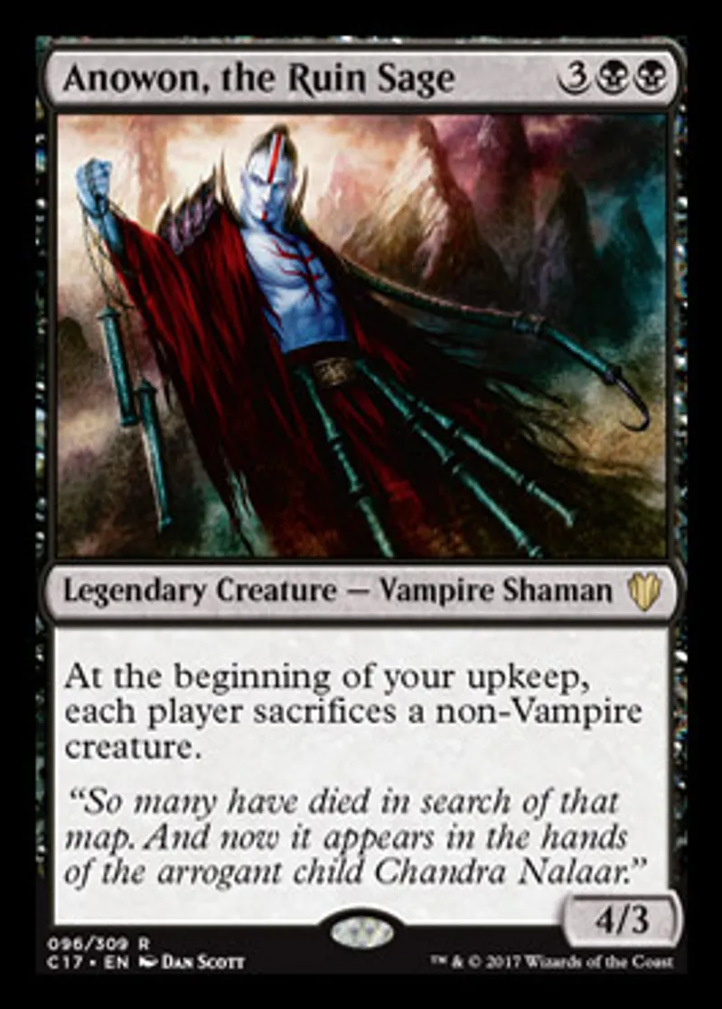 Magic: the Gathering (mtg) Rare Legendary Creature - Vampire Shaman Anowon, the Ruin Sage from Commander 2017 (C17) last updated 2026-02-25 15:00:02