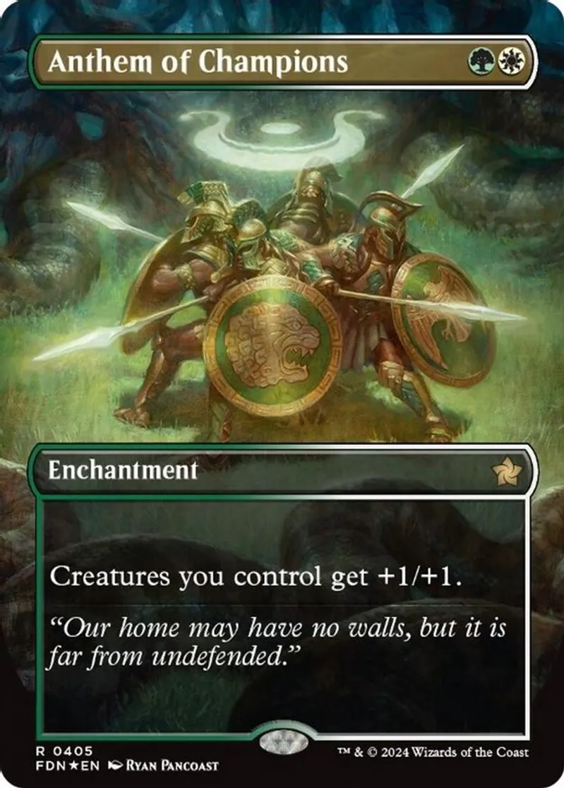 Anthem of Champions (Borderless) (Mana Foil) is a Rare in the set Foundations.