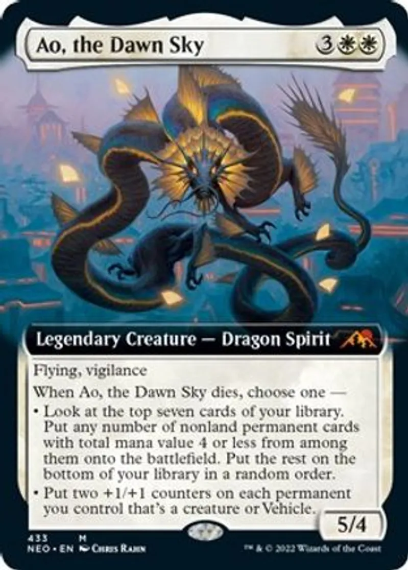 Ao, the Dawn Sky (Extended Art) is a Mythic Rare in the set Kamigawa: Neon Dynasty.