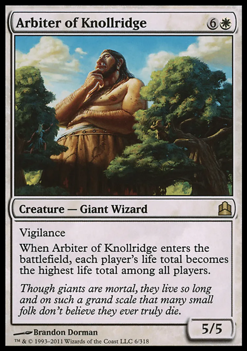 | Oracle Text | Vigilance When Arbiter of Knollridge enters the battlefield, each player's life total becomes the highest life total among all players. | ||