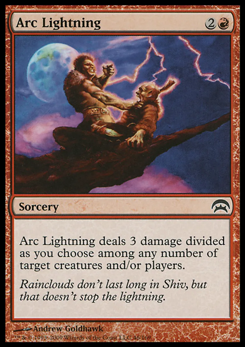 | Oracle Text | Arc Lightning deals 3 damage divided as you choose among one, two, or three target creatures and/or players. | ||