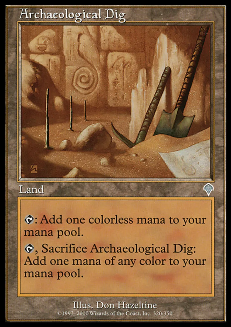 | Oracle Text | {{t}}: Add {{1}} to your mana pool. {{t}}, Sacrifice Archaeological Dig: Add one mana of any color to your mana pool. | ||
