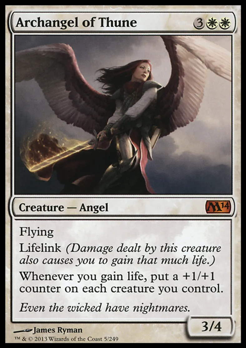 Archangel of Thune is a Mythic Rare in the set Magic 2014 Core Set.