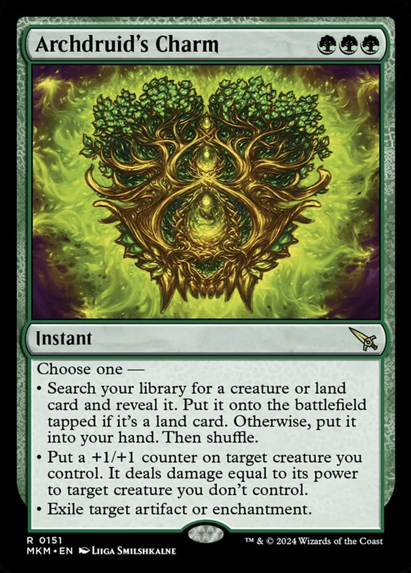 Magic: the Gathering (mtg) rare Instant Archdruid's Charm from Murders at Karlov Manor (mkm) last updated 2025-12-18 15:42:31