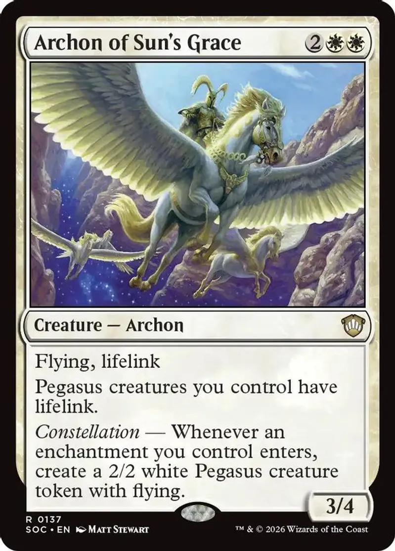 Magic: the Gathering (mtg) Rare creature — archon Archon of Sun's Grace from Commander: Secrets of Strixhaven (SOC) last updated 2026-04-17 00:18:12