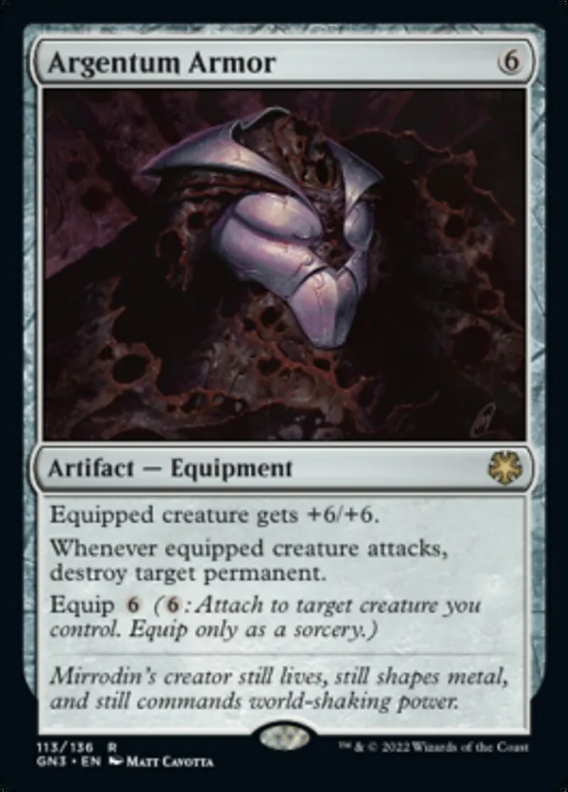 Magic: the Gathering (mtg) rare Artifact — Equipment Argentum Armor from Game Night: Free-for-All (gn3) last updated 2026-02-24 14:55:03