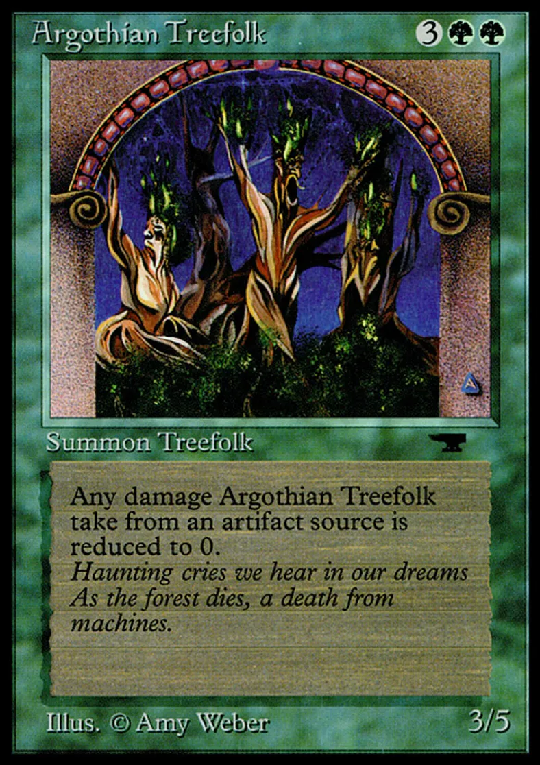 | Oracle Text | Prevent all damage that would be dealt to Argothian Treefolk by artifact sources. | ||
