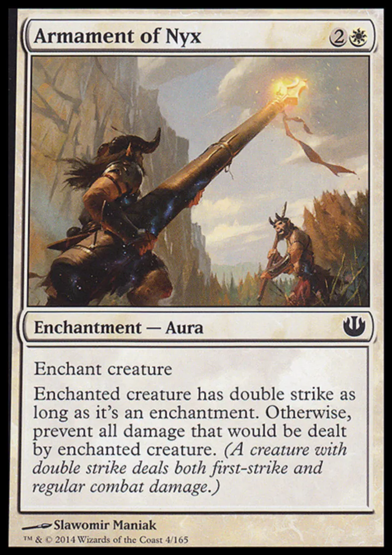 Magic: the Gathering (mtg) Common Enchantment - Aura Armament of Nyx from Journey into Nyx (JOU) last updated 2026-02-21 17:16:32