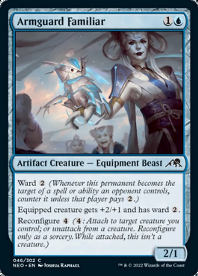 Armguard Familiar is a common in the set Kamigawa: Neon Dynasty.