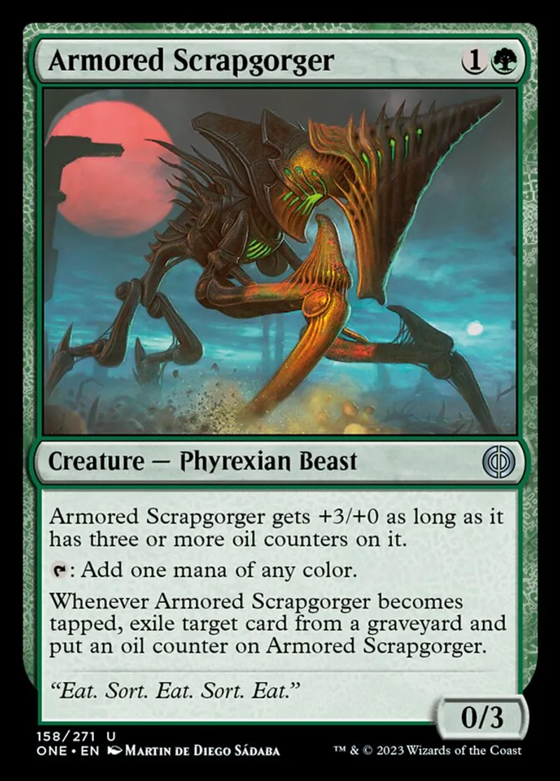 Armored Scrapgorger is a uncommon in the set Phyrexia: All Will Be One.